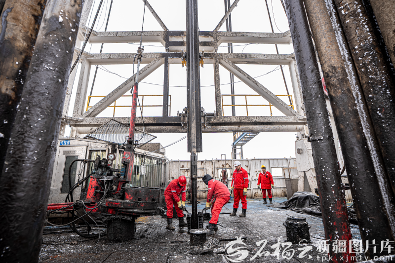 12月8日,中国石油新疆油田吉庆作业区页岩油JHW74-33井现场钻机轰鸣。徐志远 摄